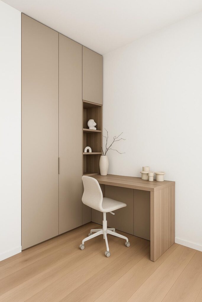 - כולל: ארון דלתות מעוצב, טריקה שקטה, תליה ומדפים, שולחן כתיבה תואם